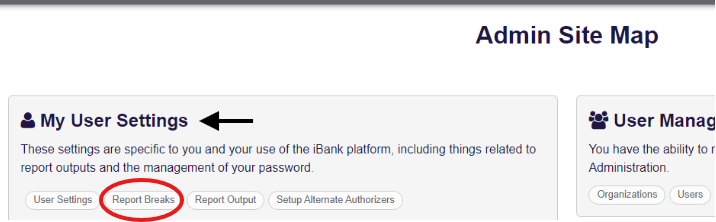 From the 'Admin Site Map' page, click 'Report Breaks' under 'My User Settings':